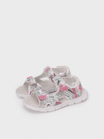 Сандалии для девочки подростка. Босоножки выполнены из искусственной кожи с эффектным газетным принтом. Удобные ремни с липучками позволяют регулировать обувь на любой подъем. Текстильная подкладка c высоким содержанием хлопка 80% обладает высокой гигроскопичностью. Стелька выполнена из свиной кожи. Модель имеет гибкую и легкую подошва из ЭВА с противоскользящим протектором.