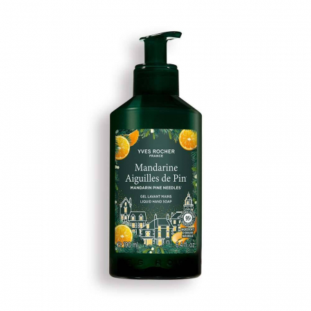 Жидкое мыло для рук с искрящимся фруктовым ароматом Мандарина и древесными нотами* бережно очищает кожу, сохраняя при этом ее естественное увлажнение и ощущение комфорта благодаря мягкой моющей основе растительного происхождения без сульфатов**.