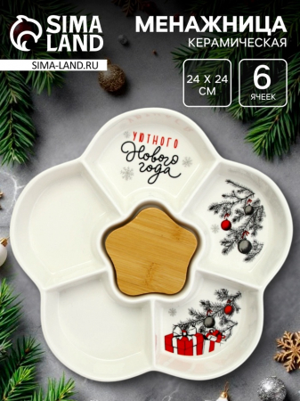 Менажница новогодняя «Уютного Нового года» с 5 ячейками, d=24 см (арт. 6895596)