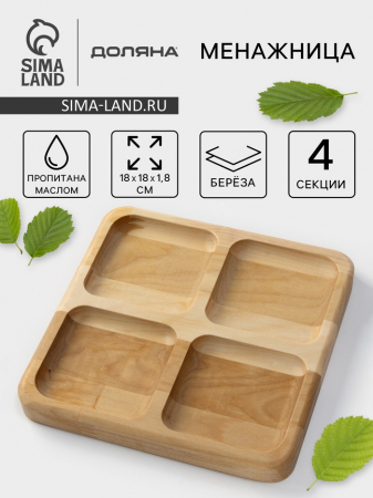 Менажница Доляна «Комо», 18?18?1.8 см, 4 секции, дерево берёза, пропитана маслом (арт. 7369910)