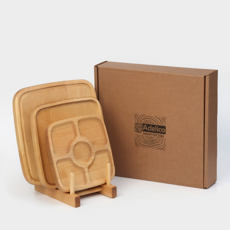 Подарочный набор посуды Adelica «Мечта хозяйки», доска разделочная d=28 см, блюдо для подачи d=24 см, менажница d=20 см, подставка, дерево берёза (арт. 9210252)