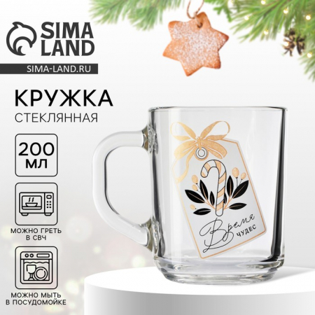 Стеклянная новогодняя кружка объёмом 200 мл — это стильный и практичный аксессуар для вашей кухни или офиса.
