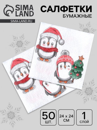 Салфетки новогодние бумажные «Пингвины» 1 слой, 24?24 см, 50 шт. (арт. 9902760)