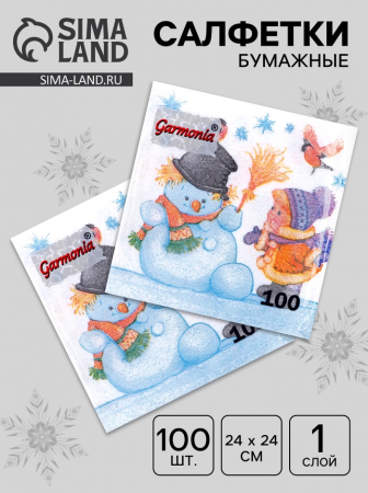 Салфетки новогодние бумажные Гармония цвета «Снеговик и дети» 1 слой, 24?24 см, 100 шт. (арт. 10687949)