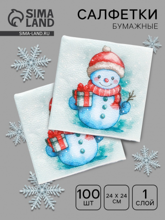 Салфетки новогодние бумажные «Снеговичок» 1 слой, 24?24 см, 100 шт. (арт. 10687251)