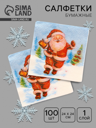 Салфетки новогодние бумажные «Весёлый Дед Мороз» 1 слой, 24?24 см, 100 шт. (арт. 10687252)