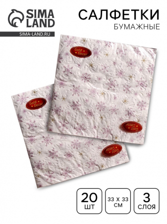 Новогодние салфетки бумажные «Рождественские звёзды», 3 слоя, 33?33 см, 20 шт. (арт. 7322789)