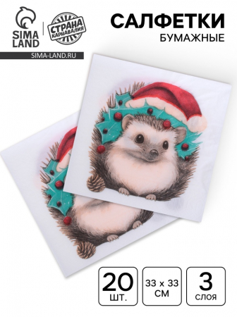 Новогодние салфетки бумажные «Новогодний ёжик» 3 слоя, 33?33 см, 20 шт. (арт. 10687936)