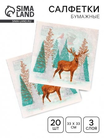 Салфетки новогодние бумажные Home Collection Classic «Лесной олень», 3 слоя, 33?33 см, 20 шт. (арт. 10693256)