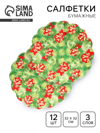 Салфетки бумажные круглые «Украшение на новогоднюю ель», 3 слоя, d=32 см, 12 шт. (арт. 9896647)