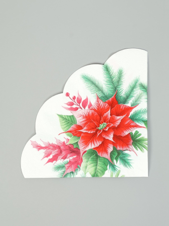 Салфетки новогодние бумажные круглые «Пуансеттия», 3 слоя, d=32 см, 12 шт. (арт. 9298443)