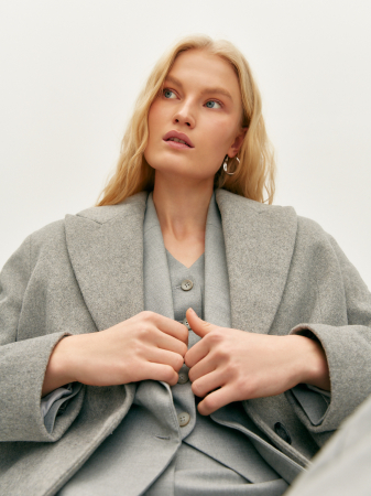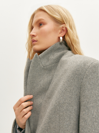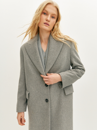 Стильное однобортное пальто прямого силуэта спокойного серого оттенка. Качественная пальтовая ткань на основе овечьей шерсти с добавлением волокон вискозы имеет особенно приятную текстуру ворса и поддерживает оптимальную температуру. Модель дополнена аккуратными карманами с клапаном и застегивается на две пуговицы. Глубокий отложной воротник с заостренным лацканом подчеркивает линию шеи. Классическое пальто легко станет базовым в гардеробе.