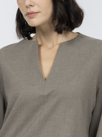 Блуза прямого силуэта с длинным рукавом сшита из качественной костюмной ткани. Поливискозное полотно мало сминаемо, приятно к телу, долговечно и прекрасно драпируется.