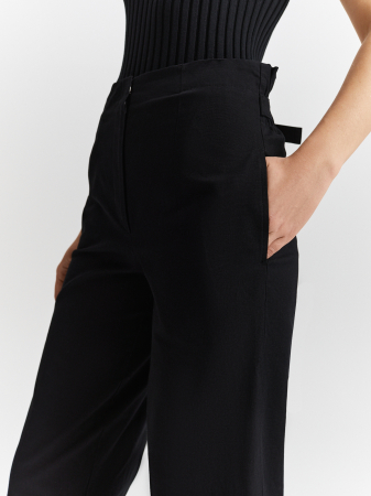Укороченные брюки прямого кроя- неизменная классика в гардеробе. Модель с высокой посадкой , отрезным поясом со шлевками под ремень и вертикальными стрелками, визуально вытягивающими силуэт. В сочетании со струящейся блузкой и лодочками на каблуке создадут эффектный деловой образ.