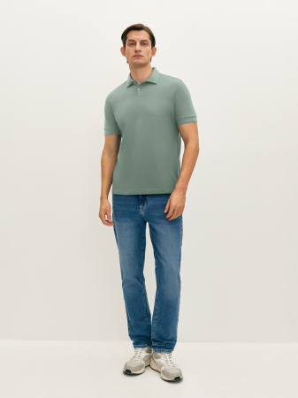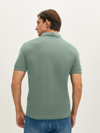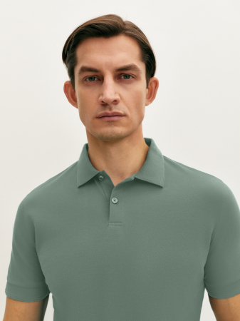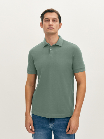 Поло приятного зеленого оттенка с коротким рукавом, отложным воротником и застежкой на две пуговицы. Манжеты и низ изделия из мягкой эластичной резинки. Модель прямого силуэта выполнена из классического фактурного мерсеризованного хлопка, который хорошо пропускает воздух, сохраняя ощущение комфорта на весь день. Это поло станет базовым в вашем гардеробе в сочетании с джинсами и костюмными брюками.