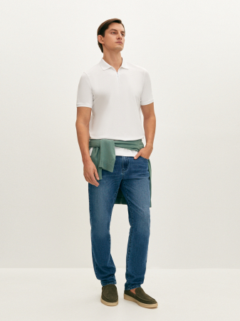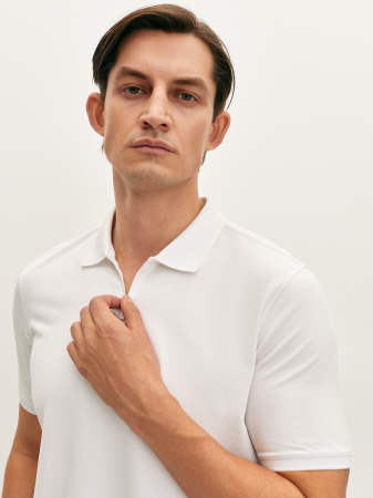 Базовое белое поло прямого силуэта с декоративными разрезами по бокам выполнено из мерсеризованного хлопка пике, обладающего гигроскопичными свойствами. Модель прямого силуэта с застёжкой на тесьму-молнию, коротким рукавом с манжетами и отложным воротником подойдет для всех типов фигур. Поло станет идеальной базой для гардероба современного мужчины, особенно в весенне-летний период. А в сочетании с джинсами и брюками составит стильный повседневный образ.