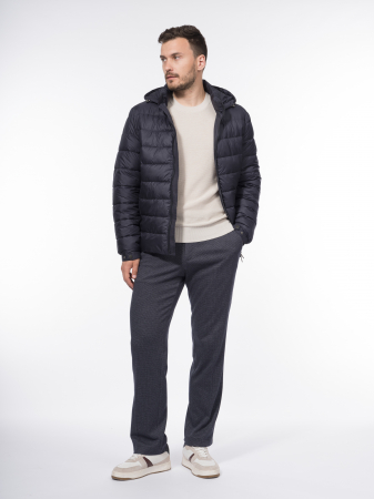 Теплая универсальная куртка с горизонтальной стежкой подойдет для завершения образа в деловом, спортивном и кэжуал стиле. Закрытый воротник-стойка, внутренний ветрозащитный клапан, манжеты на резинке и кнопках, а также удобный съемный капюшон с фиксирующей корд-системой хорошо защищают от ветра и холода. Модель надежно застегивается на качественную молнию с двумя пуллерами. Куртка выполнена с прорезными карманами с листочкой и вертикальным входом, для дополнительного удобства сконструированы внутренние накладные карманы. Для стилизации пуховик дополнен круглым брендированным бейджем. Тонкий весенний пуховик выполнен из качественной плащевой ткани с влагозащитной пропиткой и утеплен синтепухом. Синтепух - это современный высокотехнологичный наполнитель, отличающийся легкостью, упругостью, и хорошими теплоизоляционными свойствами. Благодаря горизонтальной стежке, выполненной на собственном производстве, наполнитель правильно распределен внутри изделия и надежно зафиксирован. Глубокий, контрастный и строгий темно-синий хорошо сочетается с денимом, моделями из костюмной ткани и из трикотажного полотна капсулы PERFECT BASE.