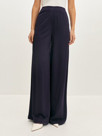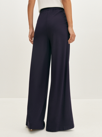 Расклешенные брюки глубокого сине-фиолетового оттенка были изготовлены из вискозного, мягкого и комфортного трикотажа. Расслабленный силуэт подчеркивает фигуру, а качественный крой и длина-макси обеспечит свободу движения. Для создания гармоничного образа мы рекомендуем дополнять брюки блузами и футболками из коллекции.