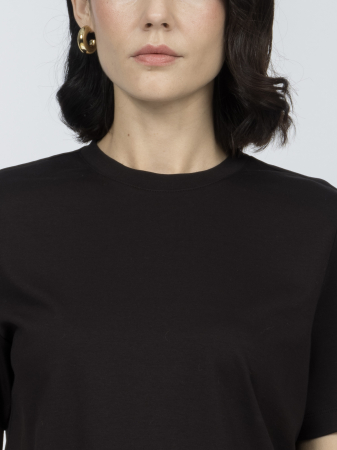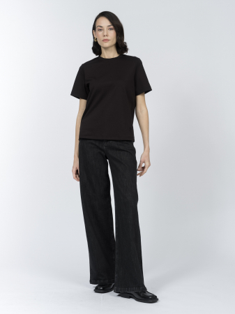 Футболка из натурального хлопка - универсальна, сочетает комфорт и презентабельность. Ее аккуратный силуэт создан полуприлегающим кроем и подчеркнут втачным коротким рукавом и лаконичным круглым вырезом с отделкой из трикотажа "рибана".