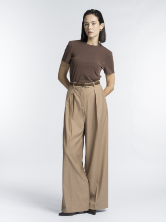 Насыщенный шоколадный оттенок подойдет ко всем поясным моделям капсулы, а тактильно приятный трикотаж с модифицированной, улучшенной вискозой долговечен и формоустойчив.