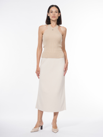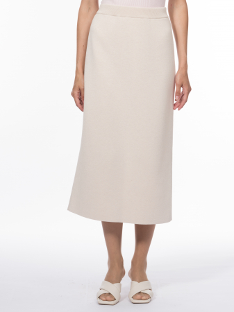 Лаконичная прямая юбка в трендовом сливочном оттенке хорошо балансирует джемпер большого объема из такой же пряжи. Модель выполнена на притачной резинке и с разрезом сзади для уверенного шага. При создании юбки использовано переплетение "жаккард", благодаря чему она формоустойчива и не подвержена растяжению при носке. Использовали для создания модели премиальную итальянскую пряжу с легким блеском, на 100% состоящую из хлопка, гипоаллергенного, тактильно приятного и дышащего. Детали модели вывязаны точно по лекалу на японской плосковязальной машине Shima Seiki, а значит изделие будет хорошо держать форму и долго прослужит. Соединительные швы выполнены на кеттельном оборудовании особым способом "петля в петлю", это премиальная, дорогая обработка, позволяющая получить эластичное соединение.