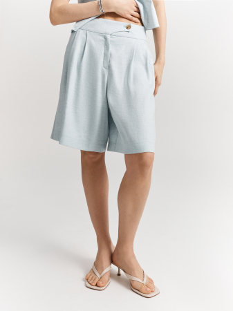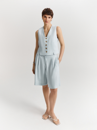 Классические шорты-бермуды - отличная альтернатива брючным костюмам. Легкая, дышащая ткань на основе льна и вискозы обладает отличной терморегуляцией и воздухопроницаемостью. Рекомендуется комбинировать с рубашкой, топом и жилетом из той же коллекции.