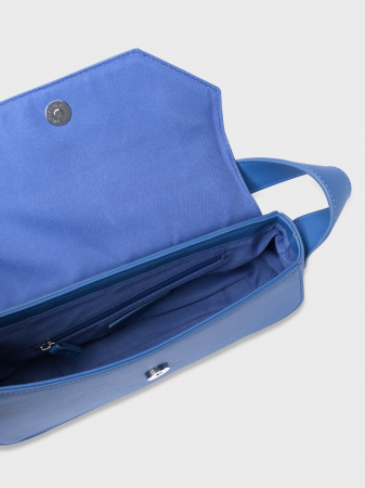 Асимметричная сумка глубокого синего оттенка — находка для любительниц нестандартных решений. Стильный аксессуар с удлиненной широкой ручкой изготовлен из мягкой матовой экокожи. Фигурный клапан с магнитной застежкой завершает образ и добавляет графичности вытянутой форме. Внутреннее отделение с подкладкой из плотного текстиля и карманом на молнии легко вместит кошелек, смартфон, очки и небольшой флакон любимых духов. Размер: 26*6*14,5 см