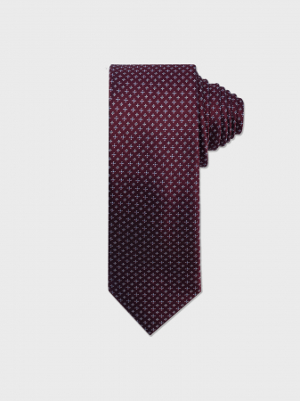 Галстук выполнен из бордового искусственного шелка с контрастным мелким узором. Подчеркнет индивидуальный стиль современного делового мужчины