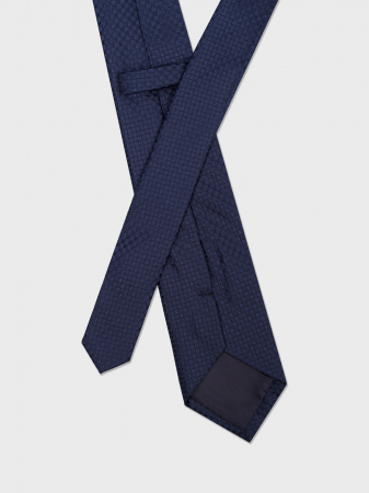Фактурный галстук выполнен из синего искусственного шелка. Подчеркнет индивидуальный стиль современного делового мужчины