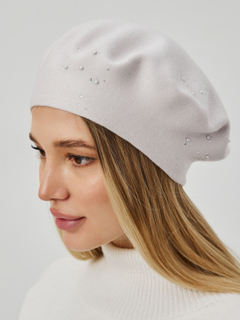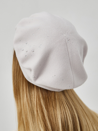 Берет двойной с кашемиром, стразовый мотив + жемчуг.