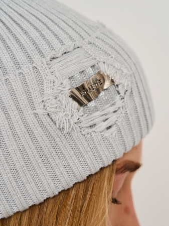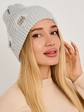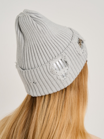 Шапка одинарная с кашемиром, с отворотом с  "рваным" эффектом,  с металлическим декором.