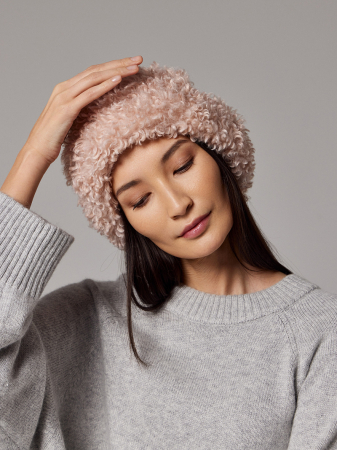 Шапка - шестиклинка на флисе с шерстью мериноса и мехом козы, с завязками. ***Фактура -коза, овца, барашек,каракуль***