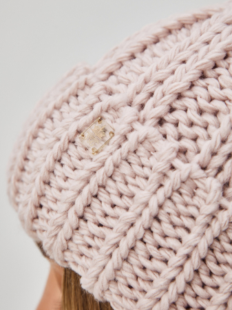 Шапка на флисе с шерстью мериноса с отворотом, с контурной вытянутой макушкой, с декором. Крупная вязка, которая всегда в моде.