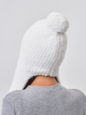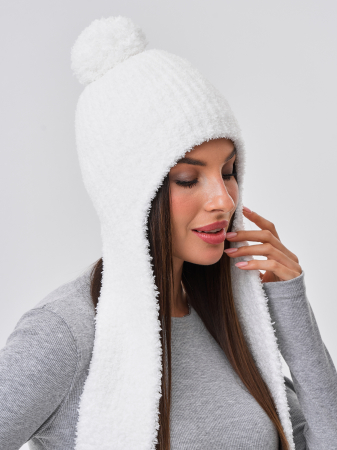 Ушанка на флисе с шерстью мериноса, с помпоном. Плюш