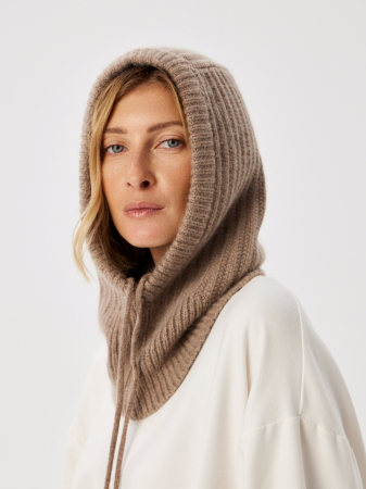 Капюшон одинарный, пух енота, шерсть мериноса, без декора, шнурок.