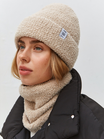 Комплект двойной с шерстью мериноса. Базовая модель с отворотом из плюша. Не упустите тренд! Обязательно добавляйте изделия с плюшем в свои коллекции головных уборов.