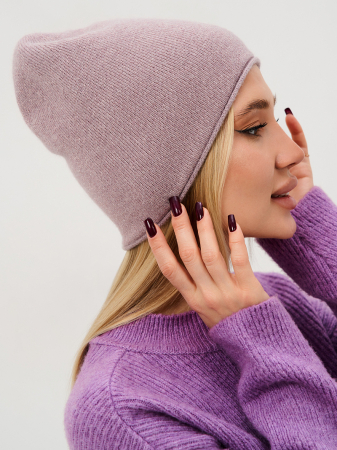 Шапка одинарная, пух енота, шерсть мериноса. Без отворота, без декора, абсолютный минимализм.
