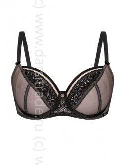 Бюстгальтер Desire M выполнен на косточках, с дополнительными боковыми поддержками, чашки мягкие, шитые из сетки телесного цвета, покрытой сверху черной сеткой и кружевом, с боковым подкроем. Пояс из черной сетки продублирован телесной сеткой. Бретельки пришиты, регулируются по длине. На спине застёжка на удлинитель, фурнитура цвета меди.