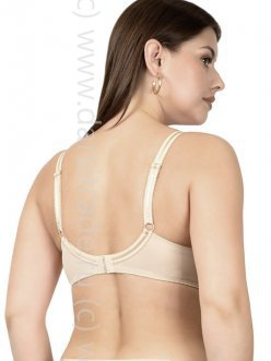 Бюстгальтер с гладкими формованными чашками, на стане, на каркасах. Центральная и боковые детали стана выполнены из кружева и усилены монокапроном. Упругие пластины в боковых деталях стана. Ажурные бретели «anti-slip» спереди.