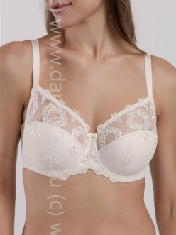 Бюстгальтер-балконет с полудублированной чашкой с множественным членением, на каркасах, обеспечит безупречную поддержку и подарит комфорт на протяжении всего дня. Нижние детали чашки на дубляже с хлопком, верхние детали из вышивки с цветочно-геометрическим рисунком. Нижние детали из неэластичного трикотажного полотна с цветочно-геометрическим рисунком. Регулируемые бретели.