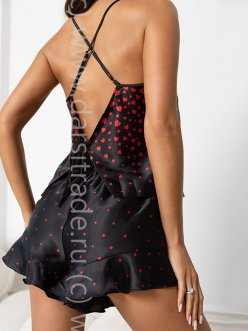 Комплект Mia-Amore состоит из топа и шорт, выполнен из принтованного искусственного шёлка. Шорты по низу отделаны игривыми воланчиками. На спинке топа эффектный вырез с завязкой.