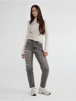Джинсы умеренно свободного силуэта mom с высокой посадкой, подчеркивающей талию. Застежка на пуговицу и молнию, скрытую планкой, 4 функциональных кармана. Мягкий хлопковый премиального качества деним оксидной варки, благодаря которой каждая модель обладает уникальным рисунком.