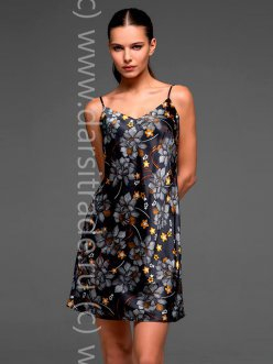 Классическая короткая сорочка Mia-Amore на тонких бретелях из искусственного шелка с цветочным принтом в темно-синей гамме.