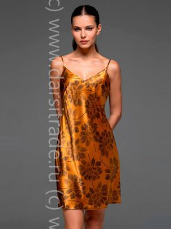 Классическая короткая сорочка Mia-Amore на тонких бретелях из искусственного шелка с цветочным принтом в терракотовой гамме.