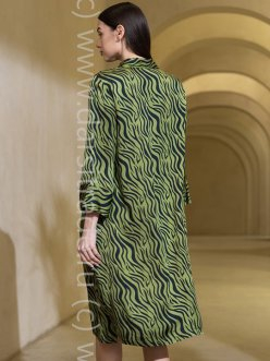 Удлиненная рубашка Mia-Amore свободного силуэта с рукавом 7/8. Изделие выполнено из принтованного смесового шелка с однотонной отделкой. По бокам обработаны карманы. По низу расположены разрезы для свободы движения. Линию талии можно подчеркнуть за счет пояса, который идет в комплекте.