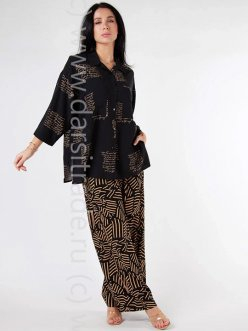 Летний костюм. Верх костюма представляет собой рубашку, рукава фиксируются. Низ - свободные брюки.