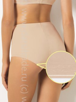 Трусы-утяжка с высокой линией талии. Выполнены из уплотненной микрофибры. Передняя часть дублирована сеткой обеспечивающей легкий утягивающий эффект и поддержку в области живота. Сзади по линии открытия ноги проложена силиконовая лента для комфортной носки. Высота бочка 18 см. Коллекция "Everybody".
