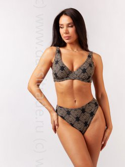 Раздельный купальник .Лиф-треугольник с тонкими поролоновыми вставками на коркасе, регулируемые бретели,металическая застежка на спине.Плавки средней посадки. Купальник имеет второй плой.