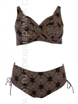 Лиф с мягкими драпированными чашками, на косточках, бретели регулируются по длине, на спине металлическая застёжка. Плавки-слипы средней посадки, передняя часть продублирована подкладкой, высота плавок регулируется кантом.