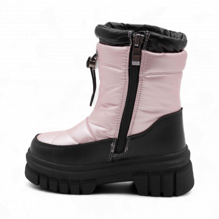 Материал: Верх обуви выполнен из непромокаемого текстиля, что обеспечивает надежную защиту от снега и влаги. Вставки из экокожи дополнительно защищают мысок и пятку сапожек от механических повреждений.